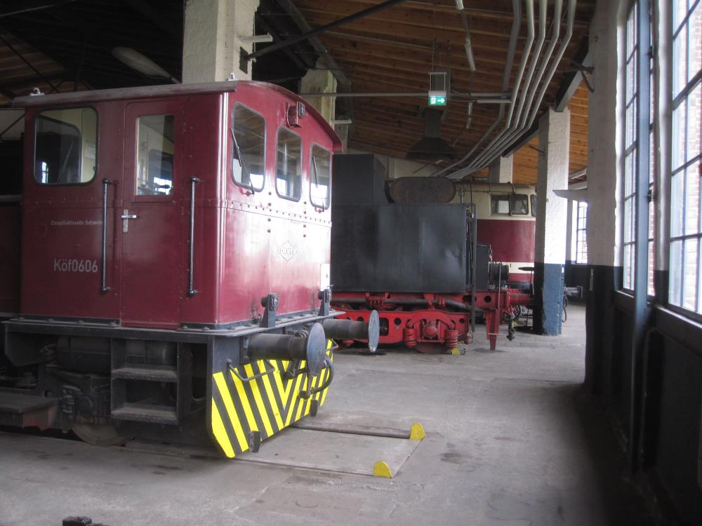 The half-roundhouse today provides undercover accommodation for our vehicles on 16 tracks. The roofed-over area is a good 2,000 square metres. It was built in the 1920s and was in service until 1996. The location was then closed and abandoned. The majority of the installations were either removed or stolen. At the last round-up, there were neither lamps nor pipes nor windows. Finally, to secure the building the Deutsche Bahn AG used perforated panels to cover all the window openings. Eventually, the roof collapsed. Then after comprehensive restoration measures started in 2011, in 2012 the building was taken into operation as the museum you see today.