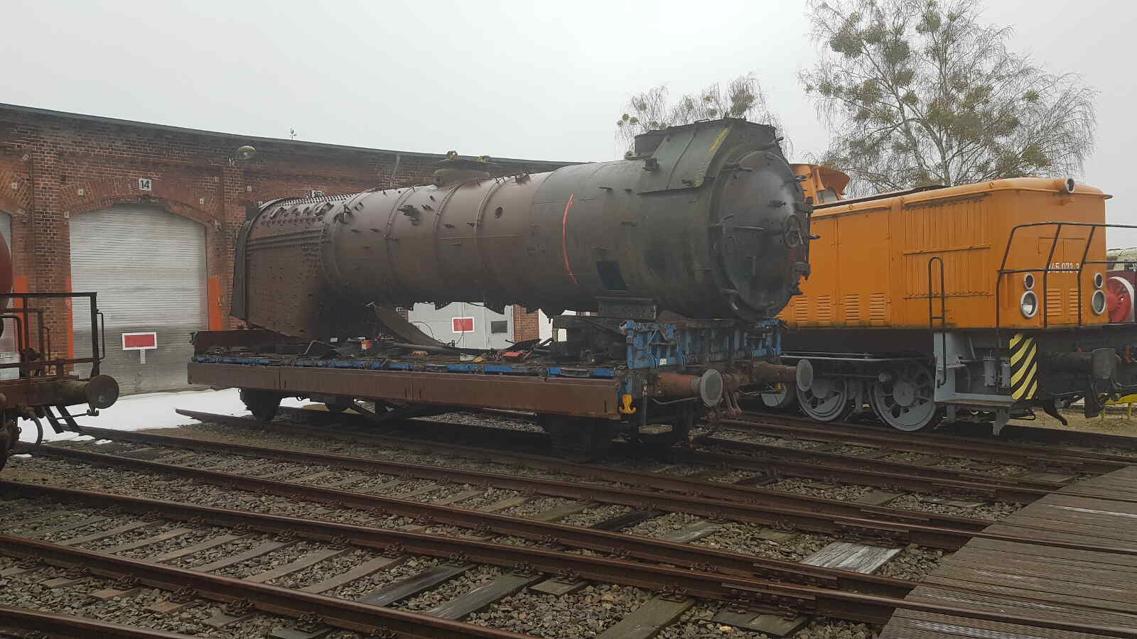 Many people are probably wondering what we intend to do with a mobile crane. Well, the answer is already standing in front of our locomotive shed. In the medium term, our replacement boiler is to be rebuilt onto a steam locomotive.
