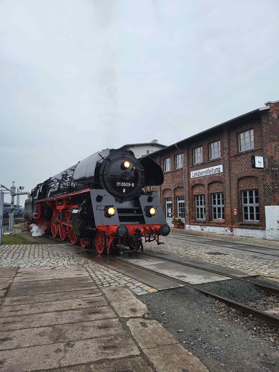 Last week, steam locomotive 01 509 had to be fired up, because it was supposed to haul a speial train from Plauen to Wernigerode on Saturday. This, as some may know, is not so easy. In order to put the oilfired locomotive into operaion, a steam donor is needed, this time in the form of our steam locomotive 50 3570.