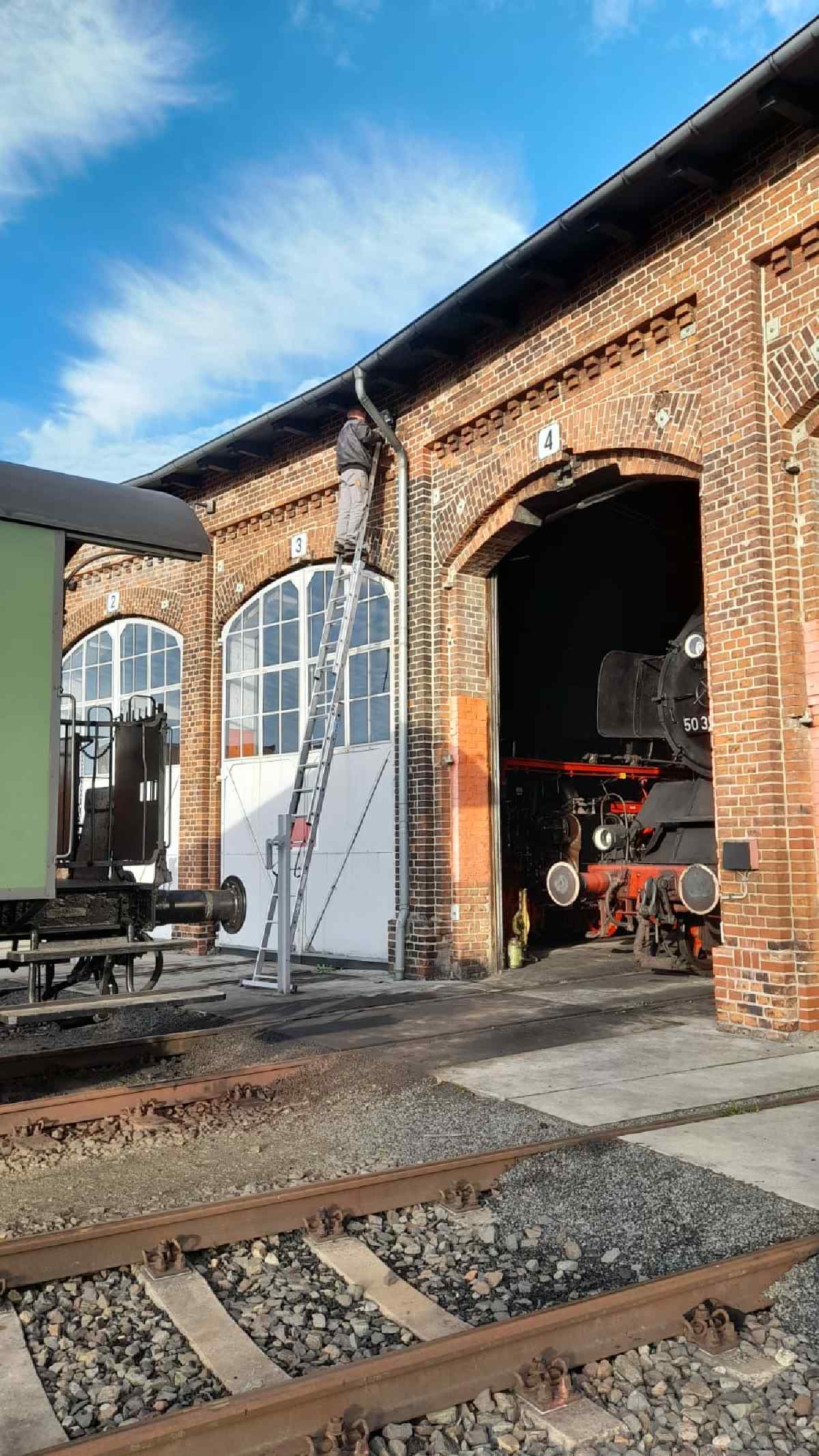 Last Saturday, we could start with the winter maintenance of our steam locomotive 50 3570. First, the water was drained from the boiler and the tender to avoid frost damage and to be able to wash out the boiler.