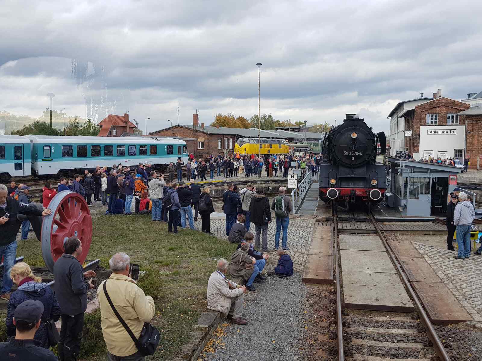 Im Rahmen des Festes werden die Fahrzeuge abwechselnd auf der Drehscheibe gezeigt bzw. jeweils ab 14:00 Uhr in einer großen Parade vorgeführt. Auch kann man auf dem Führerstand einer Dampflok mitfahren oder eine kleine Rundreise durch das Museumsgelände in einem historischen Reisezugwagen unternehmen. Wer gerne selbst Hand anlegen möchte, kann eine Draisine bewegen, eine moderne Lok virtuell im Fahrsimulator der Eisenbahngesellschaft Potsdam steuern oder mal eine Weiche von unserem historischen Stellwerk „Wm“ aus stellen.