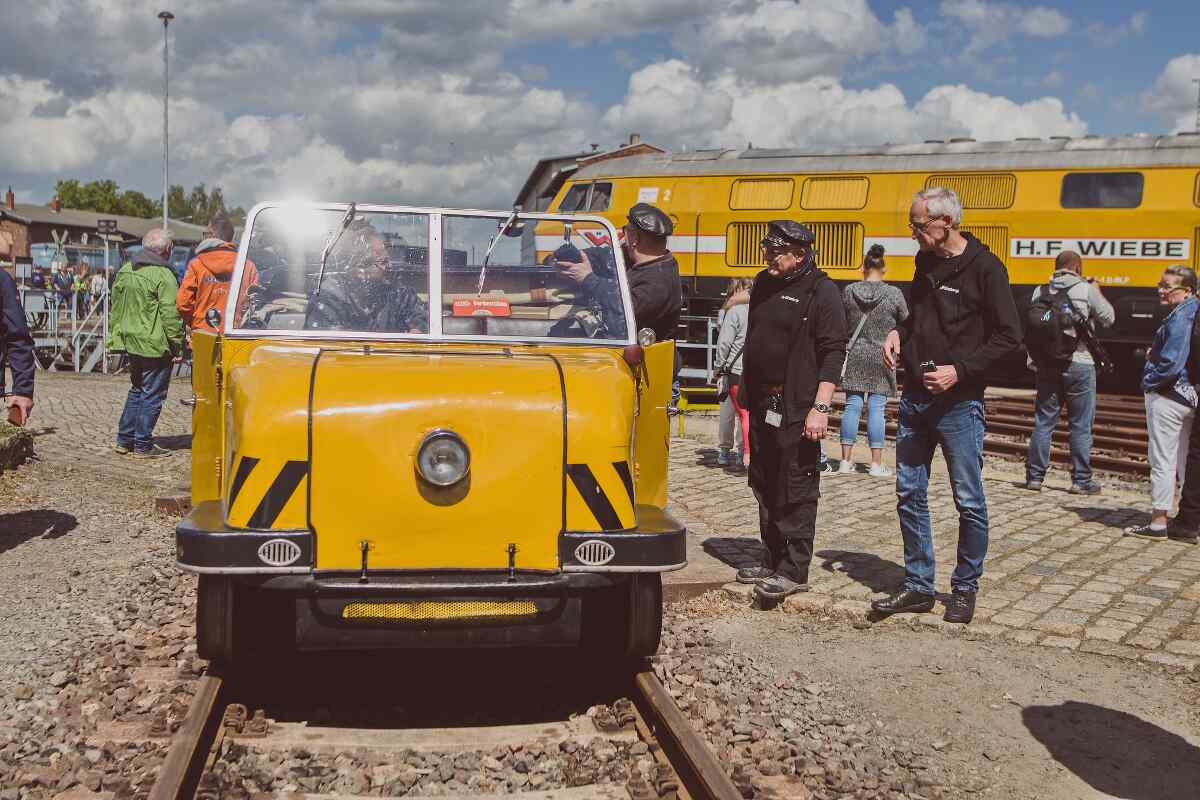 It and the museum's vehicles are available for viewing and for cab rides. Those who prefer a more leisurely pace can take a ride in an old passenger coach from the beginning of the last century on a circuit through the museum grounds, take a ride on the turntable or drive a muscle-driven trolley. Of course, there will also be plenty of refreshments on offer. The volunteer fire brigade will once again be providing support with its home-made pea soup.