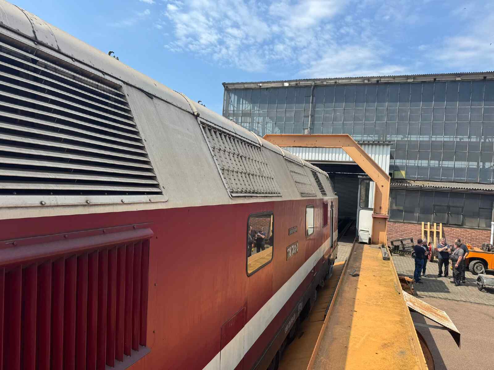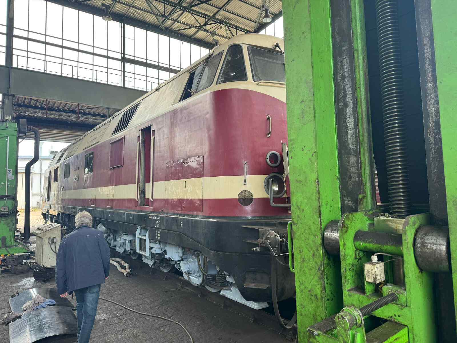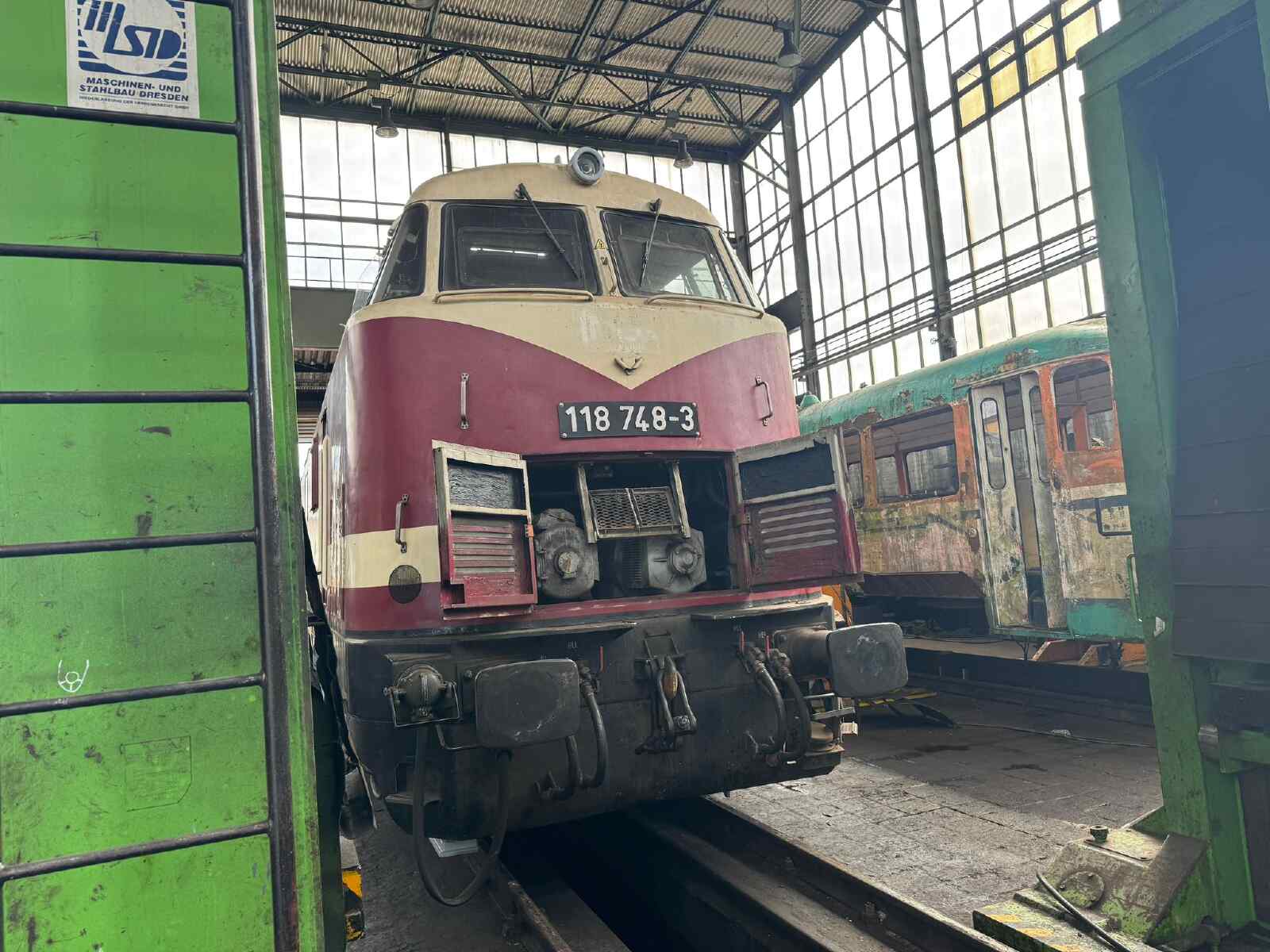 Now let's move on to the activities in the museum and its vehicles. During the last event, some visitors asked where our diesel locomotive 118 748 was. The answer is that it is still in a contractor's workshop where a general inspection is being carried out. The relevant work is almost complete, the locomotive is back on its own wheels and the engines are running. Remaining work is currently being carried out, such as the installation of a modern radio system. This is a prerequisite for using the locomotive on public tracks.
