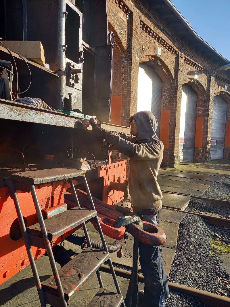 The tender of the steam locomotive 50 3570 will soon be painted as well, but it is necessary to remove a lot of old paint first.