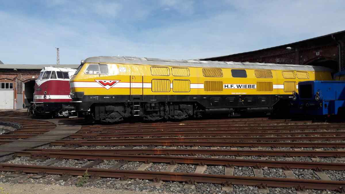 Der 3. Juni 2023 war für uns ein großartiger Tag, denn es lagen seit langem nicht mehr gehörte Geräusche in der Luft. Das hatte folgende Hintergründe: Die Aufarbeitung weiterer Diesellokomotiven wurde begonnen. Dazu zählt zunächst unsere Diesellok 118 748. Diese Maschine wurde 1968 beim Lokomotivbau Karl Marx in Babelsberg gebaut und war bis Mai 2015 im Einsatz, zuletzt vor Güterzügen. Sie verfügt über zwei Motoren mit je 1.000 PS und kann bis zu 120 km/h schnell fahren.