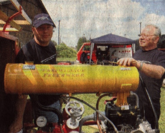 Andreas (links) und Burghard Müller von der Tragkraftspritzen-Interessengemeinschaft Wöpel zeigen ihre Schätze.